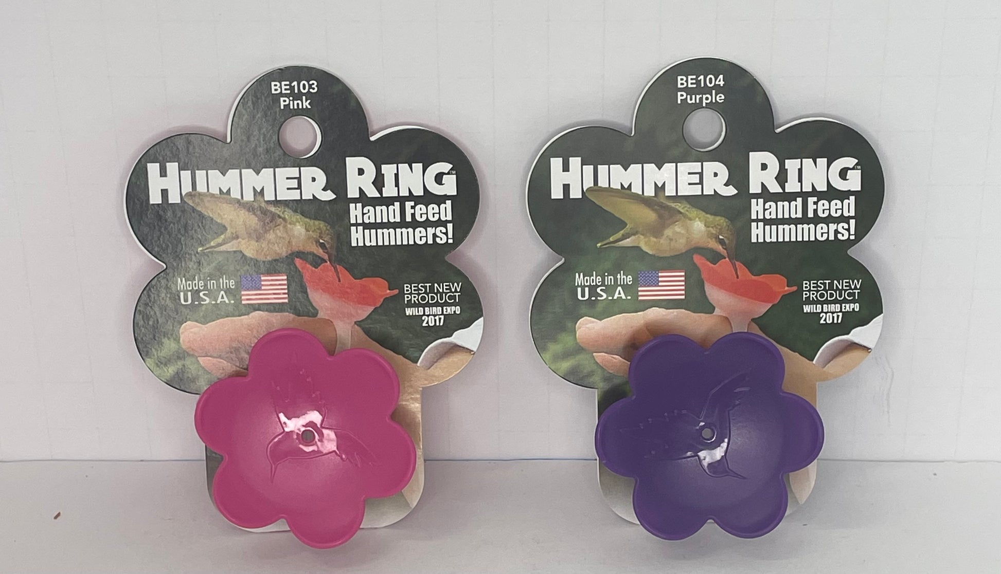 Hand Feed you Hummingbirds! This Hummingbird Ring is great for kids and adults alike. You can feed your Hummingbirds right from your hand. It holds 10 milliliters of nectar and it top rack dishwasher safe. Ring coler may vary from photo.