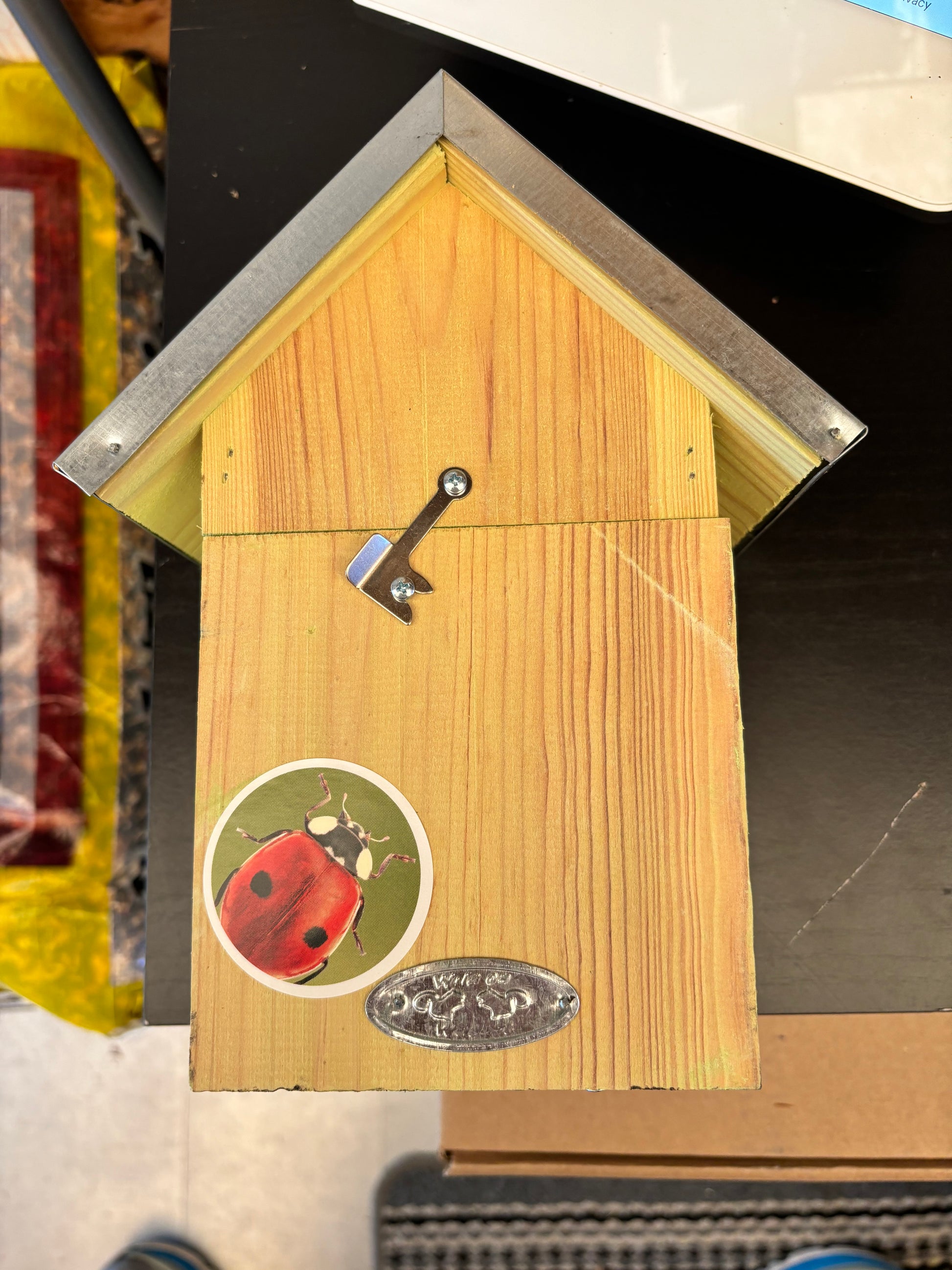 A safe place for lady bugs to live in your yard. All wood with metal roof