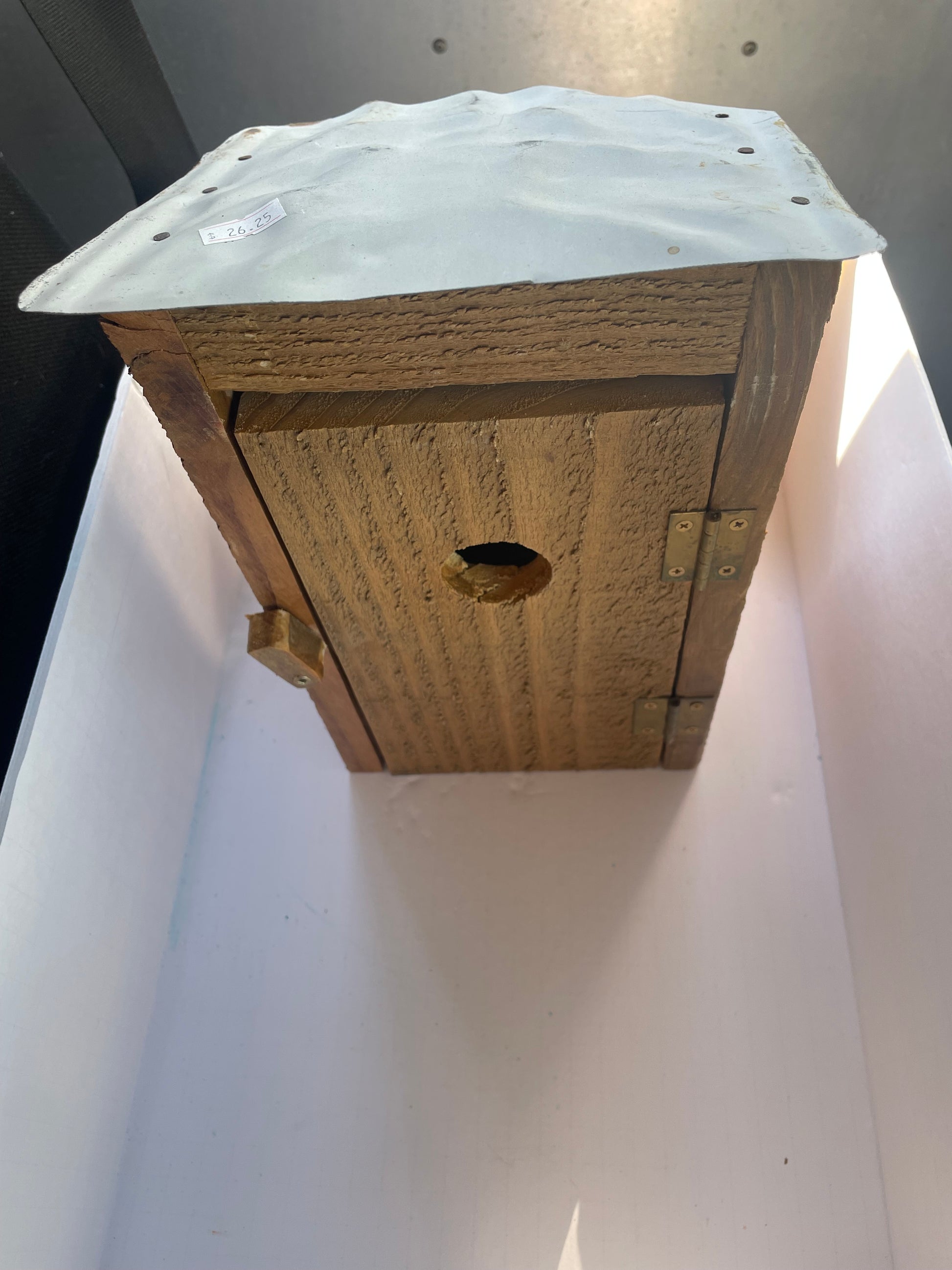 These birdhouses are locally made with solid wood and metal roofs. The front opens for easy clean out.