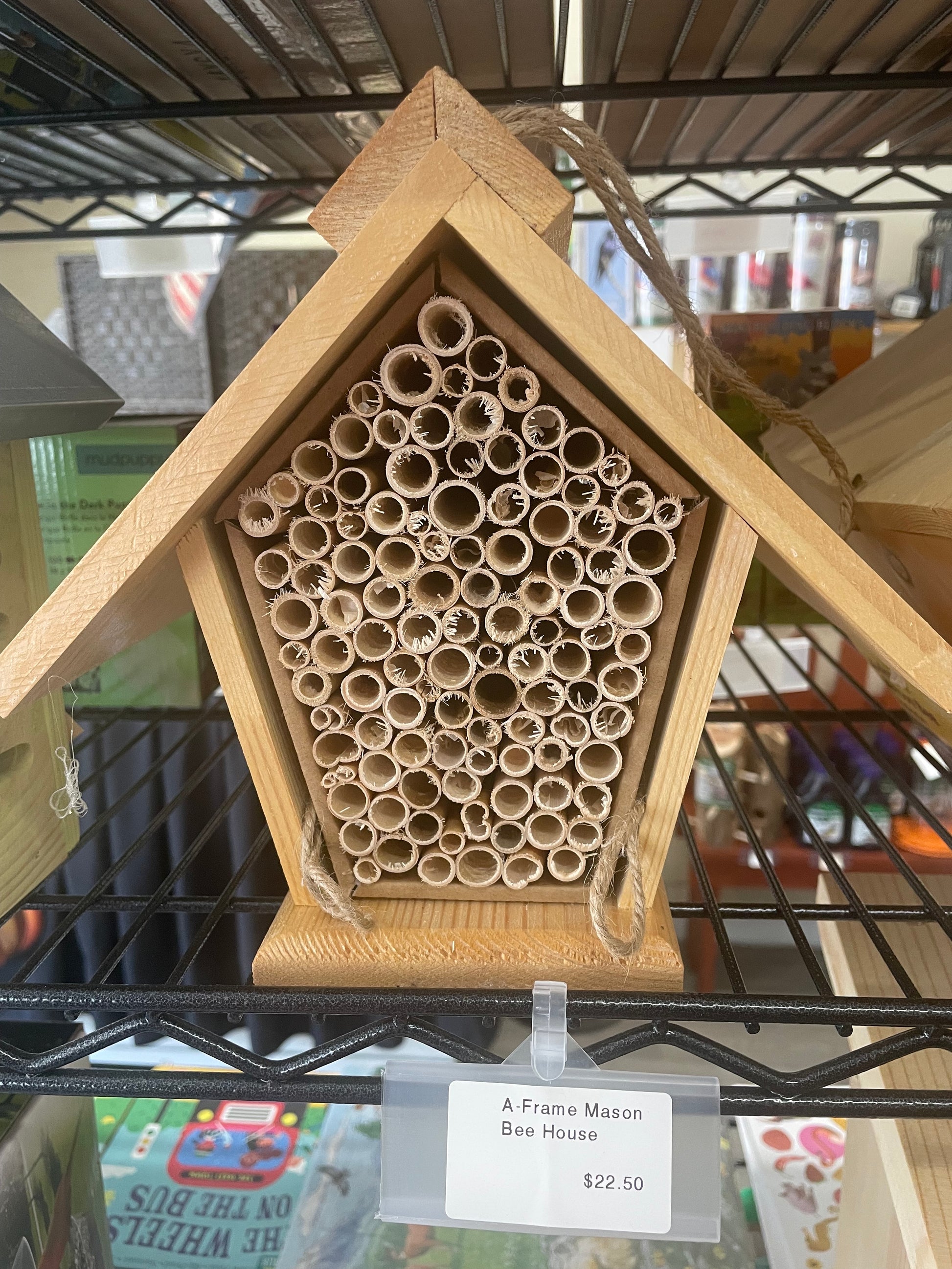 Cute A-Frame Mason Bee House for you "buzzy" friends. This house helps keep the bees from boring into you valuable wood structures.
