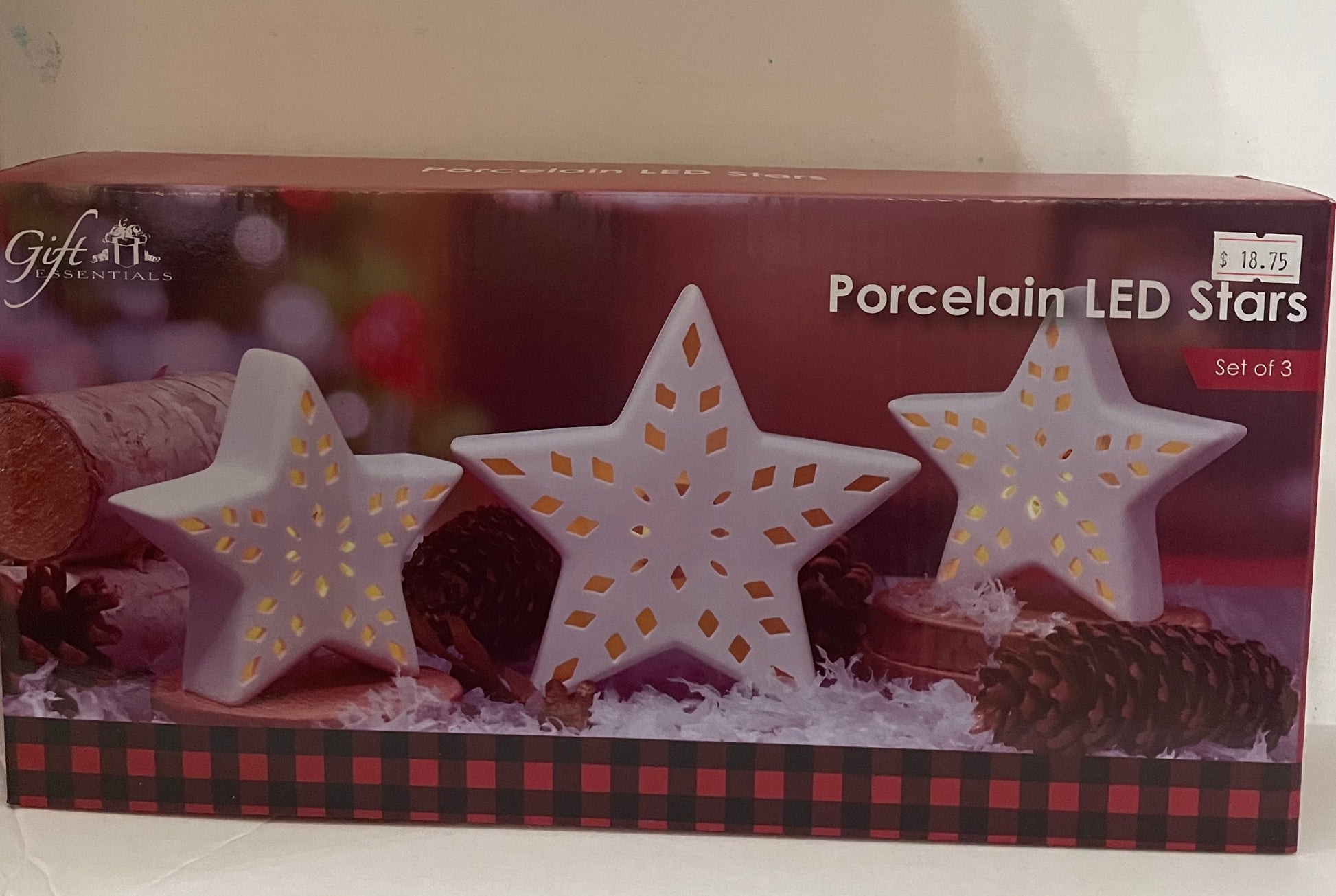 This Porcelain LED Star Set makes a beautiful decoration for the holiday season! Battery operated LED lights help light up the night!