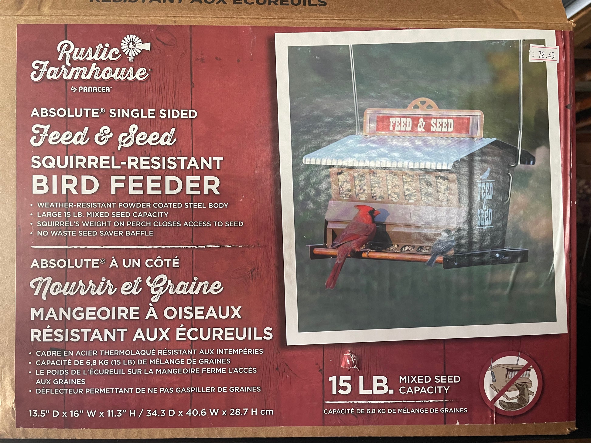Squirrel Resistant Rustic Farmhouse "Feed & Seed" Bird Feeder